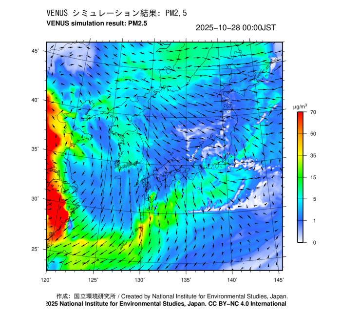 本サイトでは、国立環境研究所が開発・運用している「大気汚染予測システム(愛称:VENUS)」の予測結果を公開しています。ZIPファイルには、2025年10月28日の予測結果に基づいて作成した...