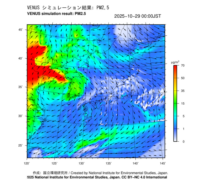 本サイトでは、国立環境研究所が開発・運用している「大気汚染予測システム(愛称:VENUS)」の予測結果を公開しています。ZIPファイルには、2025年10月29日の予測結果に基づいて作成した...
