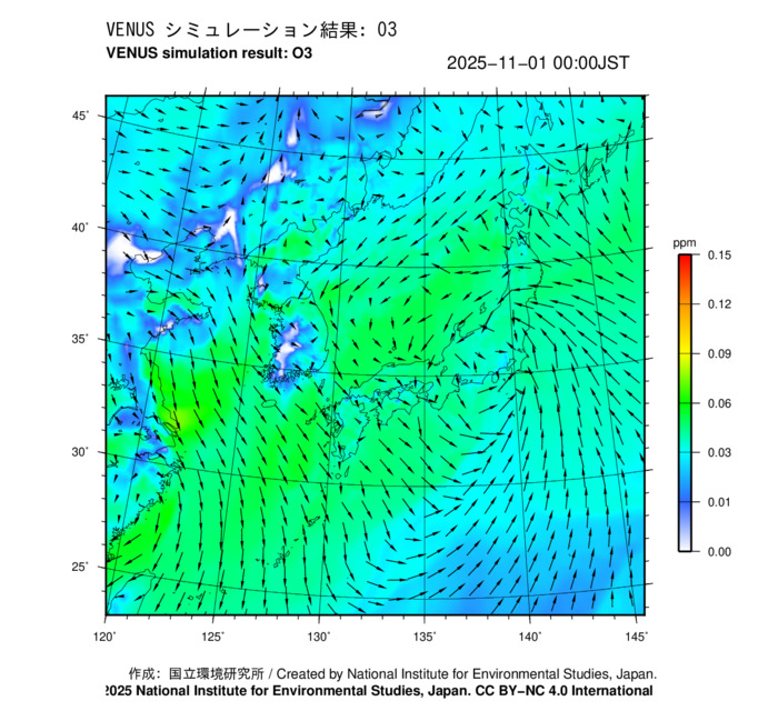 本サイトでは、国立環境研究所が開発・運用している「大気汚染予測システム(愛称:VENUS)」の予測結果を公開しています。ZIPファイルには、2025年11月1日の予測結果に基づいて作成したO...